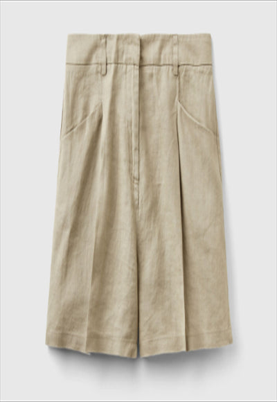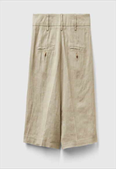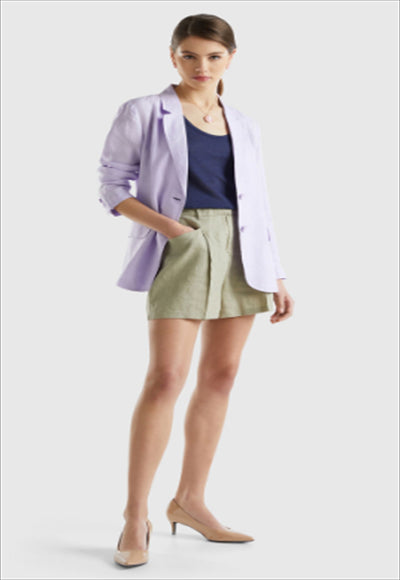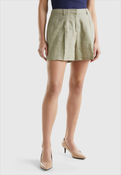 شورت بطول منتصف الفخذ مع ثنية أمامية. خصر عادي مزود بسحاب وخطاف وفتحة زر. جيوب أمامية وجيب صغير مزود بزر في الخلف. هذه القطعة مصنوعة من الكتان النقي: ألياف نباتية مقاومة وقابلة لإعادة التدوير وتستهلك الحد الأدنى من الموارد الطبيعية.