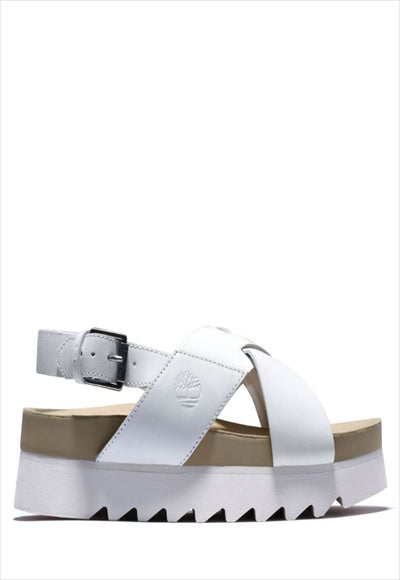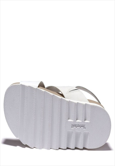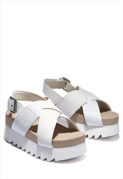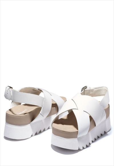 صندل نسائي بإغلاق خلفي وأشرطة على شكل حرف X. الصندل مزود بتقنية OrthoLite التي تعطي خفة