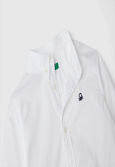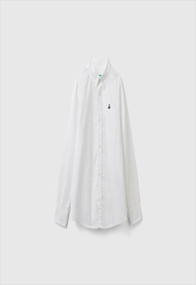 قميص بأكمام طويلة من القطن الخالص المصبوغ بالخيوط. ياقة كلاسيكية بأزرار وفتحة أزرار أمامية وشعار مطرز على الصدر الأيسر. أسفل مدور وأطول قليلاً في الخلف. طراز كاجوال لملابس تلائم عدة مناسبات للاستخدام.
