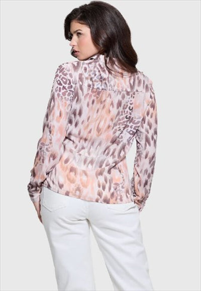 قميص جورجيت منسوج طبعة جاكوار كاملة ياقة مطوية أكمام طويلة بأزرار عند الأكمام إغلاق بأزرار أمامية