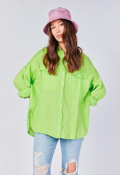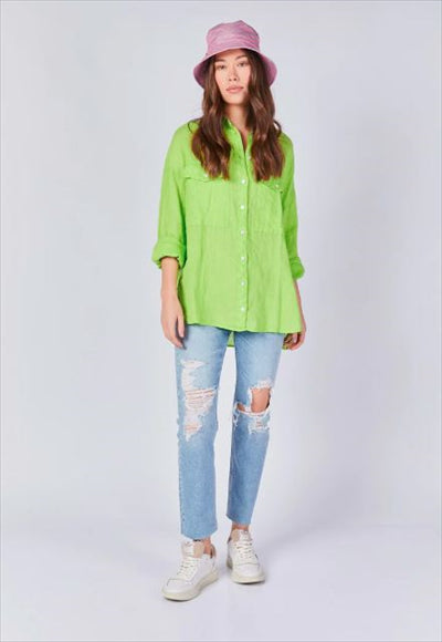 قميص طويل من الكتان المصبوغ بالملابس.