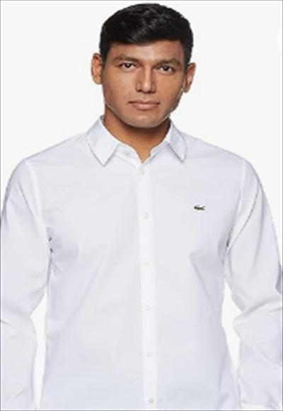 طوق القميص بدون أزرار مقاس نحيف قماش البوبلين القطني المطاطي تمساح أخضر مطرز على الصدر قطن (100%)