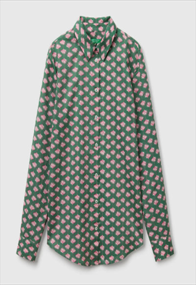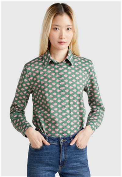 قميص بأكمام طويلة من قماش قطني خالص خفيف الوزن. ياقة كلاسيكية، وأزرار أمامية، ونقشة زهور تغطيه بالكامل. مريح ومناسب للاستخدام اليومي، ويمكن ارتداؤه في مناسبات متعددة.
