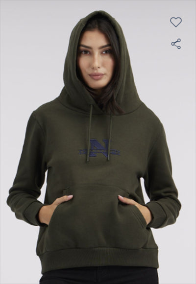سويت شيرت نسائي مع قبعة وشعار نوتيكا مطرز. تكوين القماش: 80% قطن عضوي، 20% بوليستر معاد تدويره