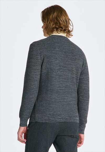 سترة رجالية بقصة كلاسيكية مصنوعة من ملابس تريكو ناعمة ودافئة تمامًا. فتحة رقبة مستديرة، وخصر وأكمام، مع لمسة نهائية مضلعة، وعلامة تجارية أيقونية مطرزة على الصدر. تتكون تركيبة المواد عالية الجودة من مزيج حصري من القطن وصوف ميرينو الناعم. يعد الشعور بالراحة للغاية أثناء الارتداء أمرًا طبيعيًا، وذلك بسبب الأصل الفاخر للألياف المستخدمة. يبرز النسيج الناعم والمرقش بشكل أنيق بشكل مثالي في الزي مع بنطال تشينو من الكتان وقميص. قطن 70% صوف ميرينو صوف خراف الميرينو 30%