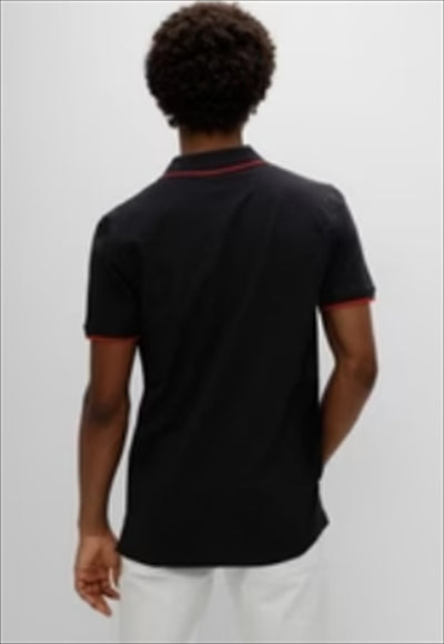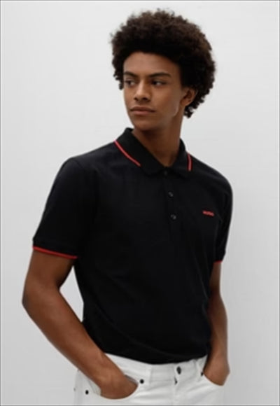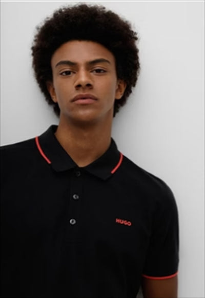 يُعد قميص بولو ذو الأكمام القصيرة ذو الألوان المتباينة من HUGO قطعة أساسية في أي خزانة ملابس. يتميز هذا البولو قصير الأكمام بإغلاق بثلاثة أزرار وياقة وأساور متماسكة مسطحة مع تفاصيل متباينة مذهلة. كما يتميز بشعار HUGO المطبوع بشكل متباين على الصدر. مصنوع من نسيج القطن والإيلاستين بيكيه، هذا البولو مريح ومتين.