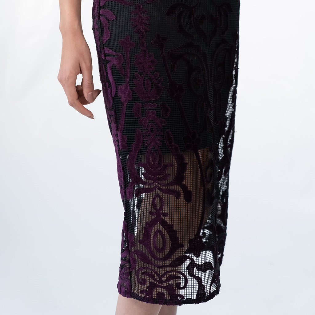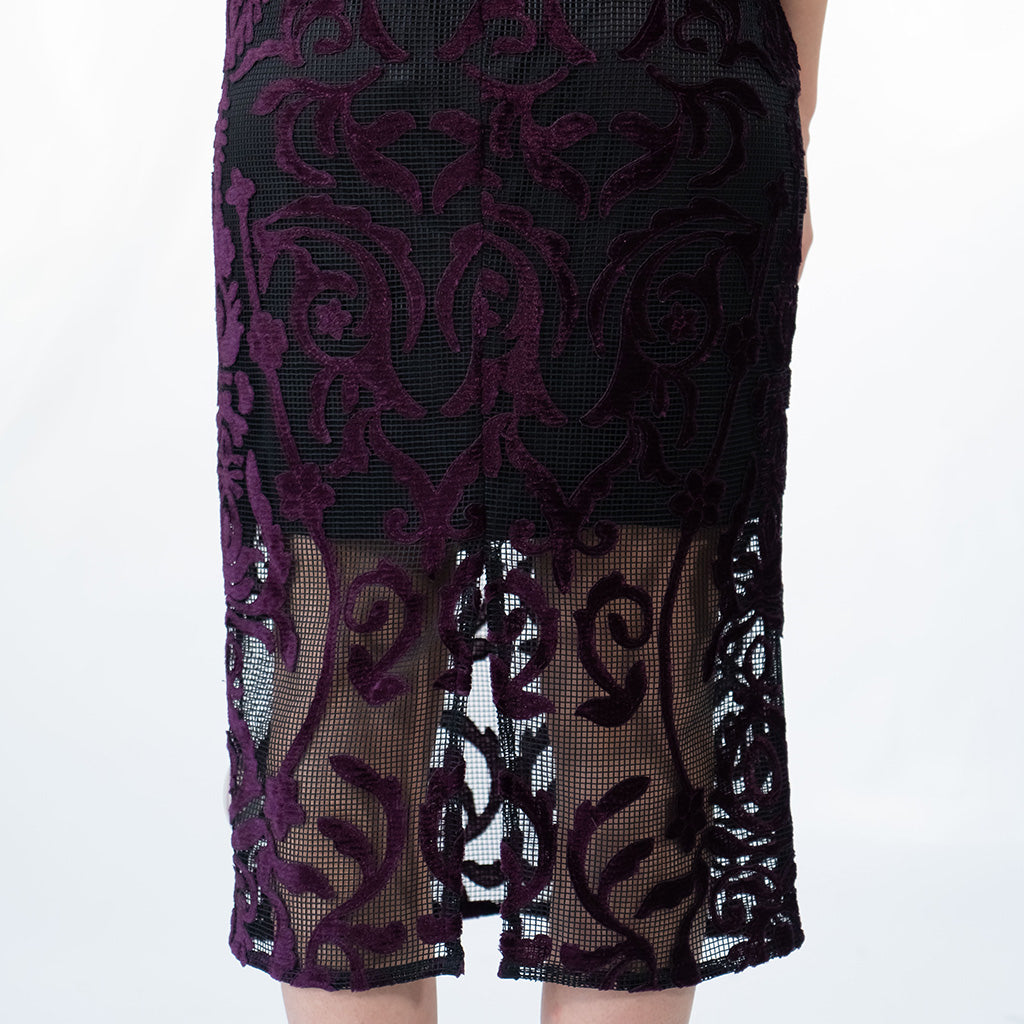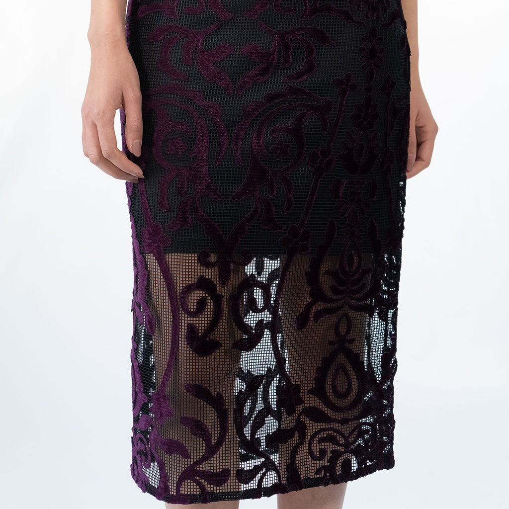 مزين بتصاميم محبوكة ونصف شفافة على كامل تنورة