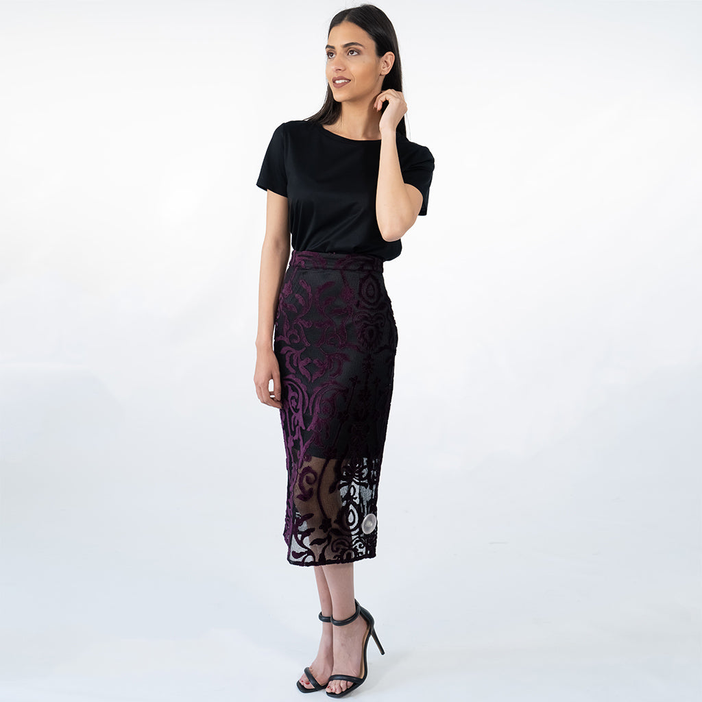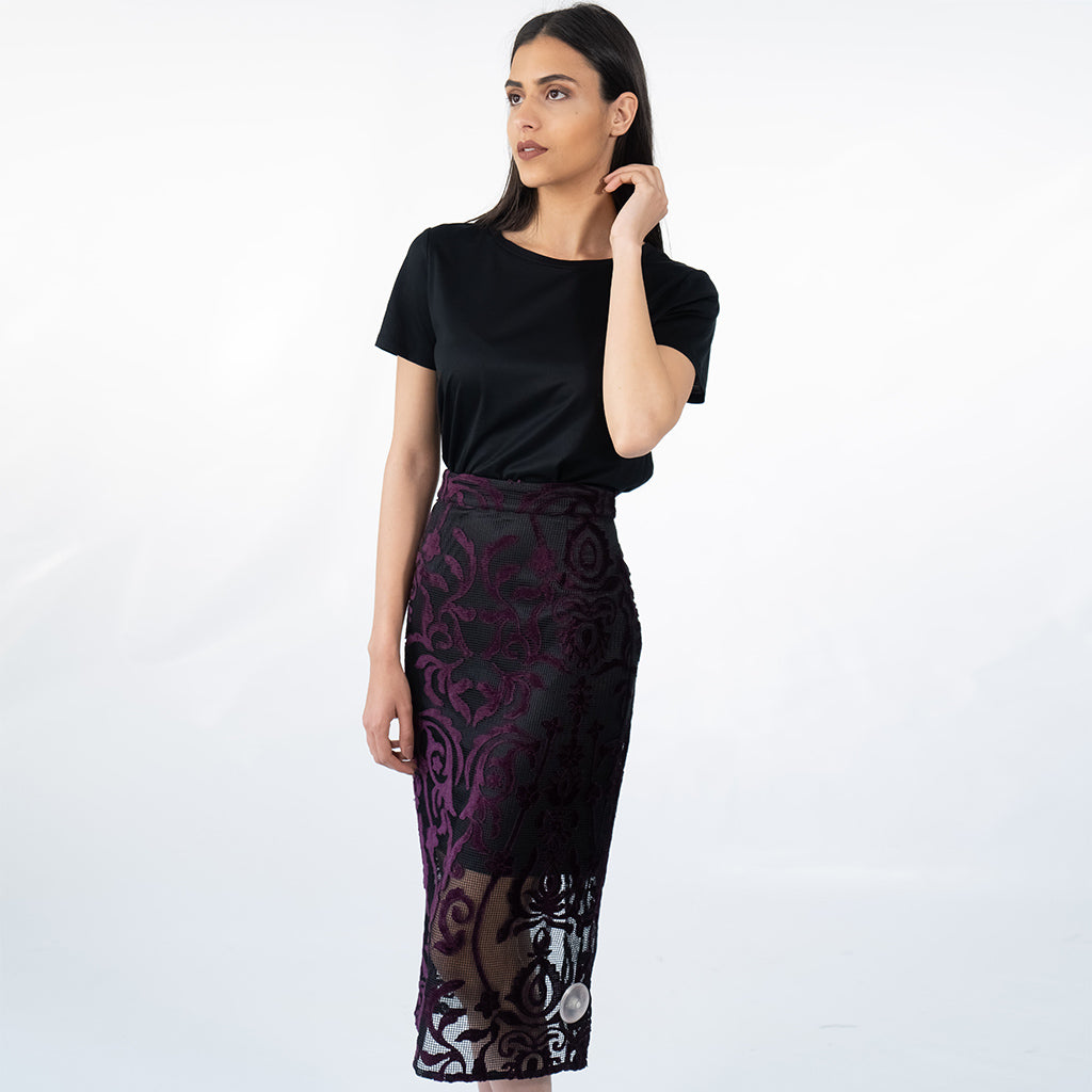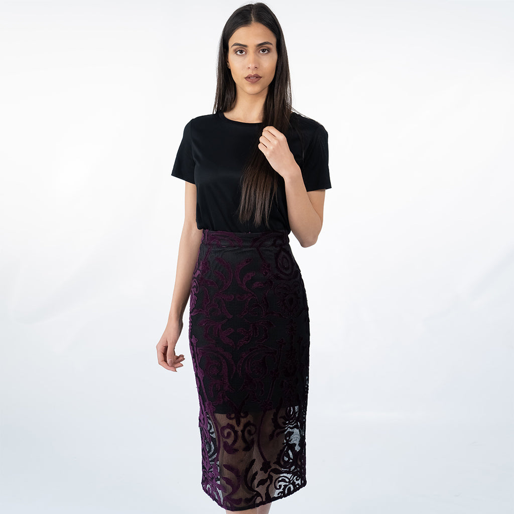 مزين بتصاميم محبوكة ونصف شفافة على كامل تنورة
