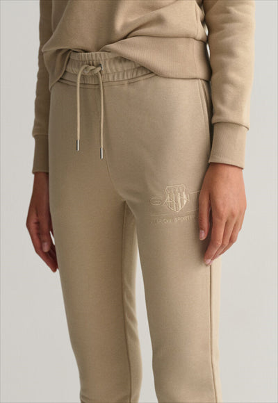 مستوحى من الأعمال الفنية في أرشيفات GANT من الثمانينيات والتسعينيات، يتميز هذا البنطال الرياضي برسم إبحار موسمي مطرز على الجيب الأمامي الأيسر مما يمنحه مظهرًا رياضيًا عتيقًا. مصنوع من مزيج القطن الناعم، وقصته عادية مع خصر قابل للتعديل برباط. المادة: قطن 87%، بوليستر 13%